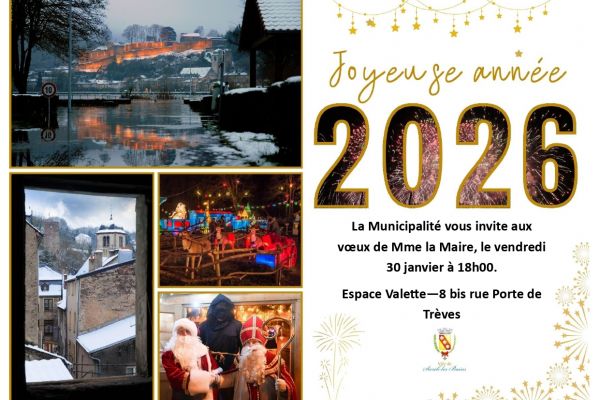 Les voeux de Mme la Maire se tiendront le vendredi 30 janvier 2026 à 18h00 à l'Espace Valette.